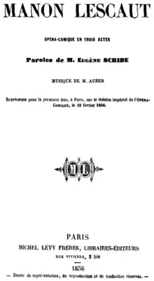 Manon Lescaut est un opéra-comique en trois actes composé par Daniel Auber sur un livret d'Eugène Scribe, et, comme Manon Lescaut de Puccini et Manon de Massenet, tiré du roman Manon Lescaut (1731) de l'abbé Prévost.