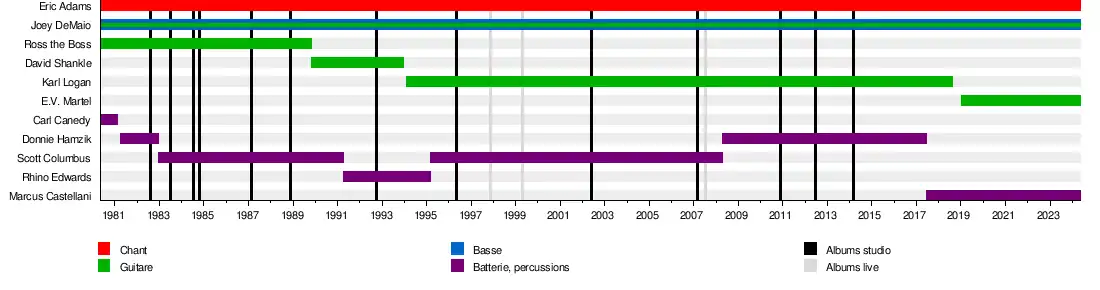 - Eric Adams – chant, chœurs (depuis 1980), guitare (depuis 1980)