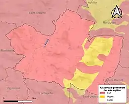 Le retrait-gonflement des sols argileux est susceptible d'engendrer des dommages importants aux bâtiments en cas d’alternance de périodes de sécheresse et de pluie. La totalité de la commune est en aléa moyen ou fort (92 % au niveau départemental et 48,5 % au niveau national). Sur les 154 bâtiments dénombrés sur la commune en 2019, 154 sont en aléa moyen ou fort, soit 100 %, à comparer aux 96 % au niveau départemental et 54 % au niveau national. Une cartographie de l'exposition du territoire national au retrait gonflement des sols argileux est disponible sur le site du BRGM[24],[Carte 3].