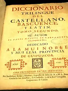 - Diccionario Trilingüe del Castellano, Bascuence, Latin (1745).