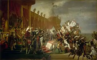 La Distribution des Aigles de David (1810) dépeint la cérémonie du Serment de l'armée à l'Empereur, le 5 décembre 1804. Les maréchaux d'Empire sont présents en tenues d'apparat au centre du tableau.
