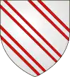 - Vairé d'argent et d'azur, à la bande de gueules chargée de trois coquilles d'argent
