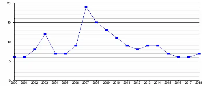 Si 1953 est considérée comme l'année la plus sèche, 2000 est au contraire la plus pluvieuse[8].