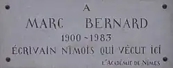 - Alain Artus, « Marc Bernard, un romancier dans sa ville », dans Robert Chalavet (dir.), Nîmes vue par les académiciens, Académie de Nîmes, (ISBN 978-2-3224-3761-0), p. 19-44.