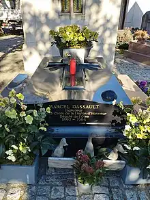 Marcel Dassault s'éteint le à l'hôpital américain de Neuilly, à l'âge de 94 ans. Il a droit à un hommage exceptionnel de la part du gouvernement Chirac qui organise ses obsèques en la cathédrale du diocèse aux armées, Saint-Louis-des-Invalides, le , geste unique envers un industriel français[43]. Il est enterré au cimetière de Passy à Paris (8e division). Son épouse Madeleine (née Minckès) meurt en 1992 à 91 ans.