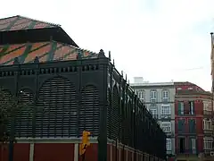 L'ancien bâtiment musulman a conditionné la création du nouveau marché, de style néomauresque avec des éléments nasrides et omeyyades. Après divers usages comme caserne et hôpital militaire, l'édifice était presque ruiné.