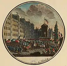 La Constitution du 14 septembre 1791 qui institue la Monarchie constitutionnelle y est proclamée le 18 septembre avec plantation d’un arbre de la liberté.