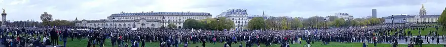 À Paris, la marche, silencieuse, débute sur l'esplanade des Invalides à 15 heures, passe devant l'Assemblée nationale puis, empruntant le boulevard Saint-Germain et le boulevard Saint-Michel, rejoint le Sénat, place Edmond-Rostand, deux heures plus tard. Elle rassemble 105 000 participants, parmi lesquels[4] :