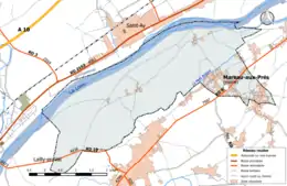 La superficie cadastrale de la commune publiée par l’Insee, qui sert de référence dans toutes les statistiques, est de 13,34 km2[12],[Note 1]. La superficie géographique, issue de la BD Topo, composante du Référentiel à grande échelle produit par l'IGN, est quant à elle de 15,15 km2[9]. Son relief est relativement plat puisque la dénivelée maximale atteint 21 mètres. L'altitude du territoire varie entre 82 m et 103 m[15].