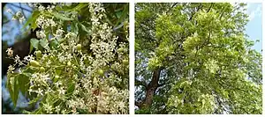 Les feuilles opposées et pennées mesurent 20 à 40 centimètres de long, avec 20-30 folioles vert foncé d'environ 3 à 8 centimètres de long. La foliole terminale manque souvent. Les pétioles sont courts.