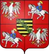 écartelé au 1) et 4 de gueules à l'aigle d'argent, becquée, membrée, languée, liée et couronnée d'or au 2) et 3) de gueules au chevalier d'argent ornée d'or tenant un bouclier d'azur chargé d'une croix patriarcale d'or; sur le tout fascé de sable et d'or au crancelin de sinople mis en bande[1]. |