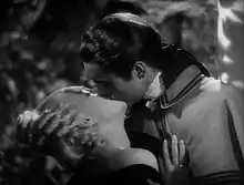 Marie-Antoinette (Norma Shearer) et le comte Axel de Fersen (Tyrone Power) s'embrassant