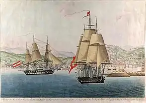 Fidèle à sa politique de statu quo politique en Europe, le gouvernement autrichien refusait de reconnaître le pavillon grec et la légitimité des blocus établis par les révolutionnaires grecs, dont il considérait ainsi les navires comme des pirates[26] ; de leur côté les Grecs avaient tendance à considérer les navires battant pavillon neutre comme de bonne prise et s'adonnaient parfois à la franche piraterie[27]. Cette situation conduisit à de nombreux incidents entre les navires autrichiens et grecs, culminant lors de deux interventions de la flotte autrichienne, dans les Cyclades en 1826[28] et à Spetsès en 1827[29],[30].