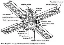 L'énergie électrique est fournie par un total de 14 742 cellules photovoltaïques regroupée sur 4 panneaux solaires d'une superficie totale de 7,7 m2. Les panneaux solaires peuvent produire 800 W au niveau de l'orbite terrestre et 500 W sur l'orbite de Mars. L'énergie est stockée dans un accumulateur nickel-cadmium de 20 A-h. La propulsion principale est assurée par un moteur capable d'une poussée de 1 340 N qui peut être rallumé cinq fois. Il brule des ergols hypergoliques : de l'hydrazine monergol et du tétroxyde d'azote. Deux ensembles de 6 moteurs-fusées à gaz froid expulsant de l'azote gazeux et qui sont montés aux extrémités des panneaux solaires sont utilisés pour contrôlé l'orientation de l'engin spatial. La connaissance de l'attitude est fournie par un capteur solaire, un viseur d'étoile Canopus, des gyroscopes, une unité de référence inertielle et un accéléromètre. Le contrôle thermique passif est obtenu grâce à l'utilisation de persiennes sur les huit côtés de la plate-forme et de couvertures thermiques.