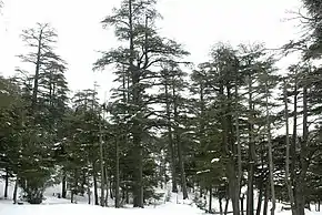- Le Moyen Atlas : séparé du Rif par les plaines arides de l'est et fertiles de l'ouest, il en est dissocié par la fameuse trouée de Taza. Le massif se compose de deux sous-parties dont l'une, vers l'est, est escarpée et compte des sommets de plus de 3 100 m (Djebel Bou Naceur ou Bouiblane) tandis que l'autre, vers l'ouest, s'adoucit et laisse place à des reliefs plus abordables et quelques petits plateaux ;