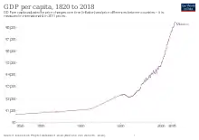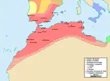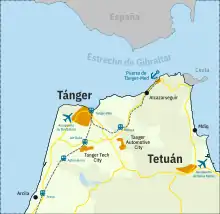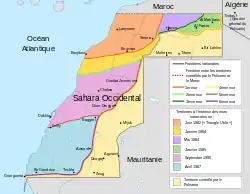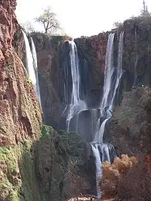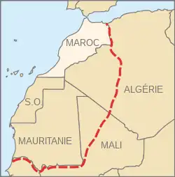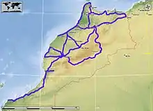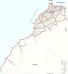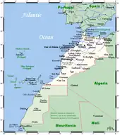 Le Maroc se compose de zones montagneuses ou désertiques, et il est un des seuls pays — avec l'Espagne et la France — à comporter des rivages sur la mer Méditerranée d'un côté et l'océan Atlantique de l'autre. Sa population est de près de 37 millions d'habitants en 2023 et sa superficie de 446 550 km2[22] (76,84 hab./km2), ou de 710 850 km2 en incluant le Sahara occidental[23],[24] — ex-« Sahara espagnol », considéré comme un territoire non autonome par l'Organisation des Nations unies[1] — dont il administre de facto environ 80 % et qu'il revendique dans sa totalité, tout comme le Front Polisario sous le nom de République arabe sahraouie démocratique. Sa culture est arabo-berbère depuis plusieurs siècles et s'est étendue principalement au Maghreb et dans le Sud de l'Espagne.