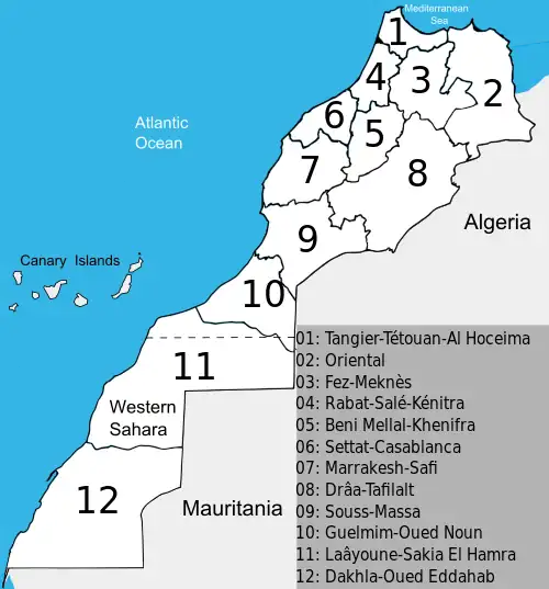Le Maroc /maʁɔk/ (en arabe : ٱلْمَغْرِب, al-Maġrib ; en amazighe : ⵍⵎⵖⵔⵉⴱ, Lmɣrib), ou, en forme longue, le royaume du Maroc, autrefois appelé Empire chérifien, est un État unitaire régionalisé situé en Afrique du Nord. Son régime politique est une monarchie constitutionnelle semi-parlementaire unitaire et décentralisée. Sa capitale administrative et politique est Rabat et sa plus grande ville, ainsi que sa capitale économique, est Casablanca.