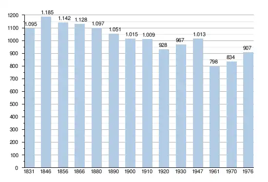 - Sources : INS, Rem. : 1831 jusqu'en 1970 = recensements, 1976 = nombre d'habitants au 31 décembre.