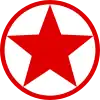 Cocarde jaune cerclé noir, Un rectangle divisé en 2 parties verticale et angles coupé en quart de cercle intérieur: haute noire, basse rouge, une étoile jaune au centre. | |
