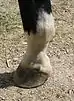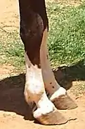 Les membres peuvent eux aussi présenter différentes marques blanches. Suivant leur taille et leur forme, elles portent un nom différent. Les plus fréquentes sont nommées « balzanes »[8]. Si elles se prolongent vers le sabot, la corne de celui-ci est fréquemment blonde au lieu d'être brune[9].