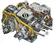- deux laboratoires d'analyse logés dans le corps du rover et alimentés en échantillon de sol ou de roche martienne par la foreuse et la mini pelleteuse situés au bout du bras du rover : CheMin qui effectue l'analyse minéralogique et SAM qui effectue l'analyse des éléments organiques et volatils ;