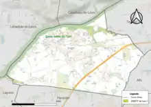 L'occupation des sols de la commune, telle qu'elle ressort de la base de données européenne d’occupation biophysique des sols Corine Land Cover (CLC), est marquée par l'importance des territoires agricoles (64,7 % en 2018), néanmoins en diminution par rapport à 1990 (69,4 %). La répartition détaillée en 2018 est la suivante : terres arables (34,5 %), zones agricoles hétérogènes (30,2 %), zones urbanisées (26,3 %), eaux continentales[Note 5] (5,2 %), forêts (3,9 %)[17]. L'évolution de l’occupation des sols de la commune et de ses infrastructures peut être observée sur les différentes représentations cartographiques du territoire : la carte de Cassini (XVIIIe siècle), la carte d'état-major (1820-1866) et les cartes ou photos aériennes de l'IGN pour la période actuelle (1950 à aujourd'hui)[Carte 2].