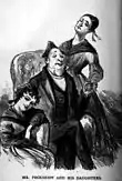 Après le père, voici les filles, Charity et Mercy (« Charité » et « Pitié »), connues sous les diminutifs de Cherry (« Cerise ») et Merry (« Joyeuse »)[N 4]. Ce sont les deux demoiselles Peksniff. La première est décrite tout au long de l'ouvrage comme étrangère à la vertu que proclame son nom, tandis que la cadette, d'abord affublée d'une sottise de fillette attardée, est amenée, par la force des événements, à changer radicalement de personnalité.