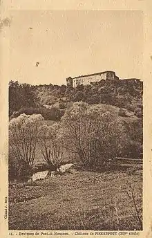 Une bonne partie de l'Histoire du bourg est liée au château de Pierrefort[23] à partir de 1306,
