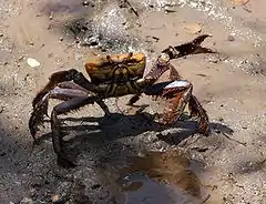 - Caribena versicolor est une mygale arboricole et vit dans le nord de la Martinique, dans la forêt tropicale humide du Précheur à Grand'Rivière. Cette espèce, relativement calme et peu agressive, est protégée localement.