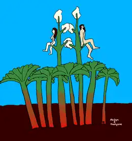 La naissance de Mashya et Mashyana à partir d'un plant de rhubarbe.
