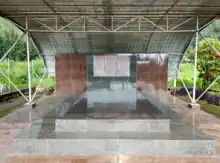 Mur commémoratif du massacre des occupants du bus de Bralirwa en janvier 1998 à Gisenyi (photo en novembre 2022) | |