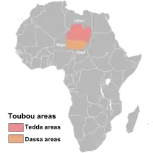 Des traces de peuplement ancien daza sont présentes sur les hauteurs et dans certains toponymes. Les Goga, Kida, Terbouna et autres Obokina ont été assimilés pour engendrer certains des clans modernes. Les clans dazas actuels, Arna Souinga au sud, Gouboda au centre-ouest, Tchioda et Dirsina à l'ouest, Torama au nord-ouest et au centre-est, Derdekichia (littéralement « descendants du chef », fruits de l'union d'un Arna Souinga et d'une Emmeouia) au nord, seraient apparus plus tardivement, entre les XVe et XVIIIe siècles, après avoir fui le royaume du Kanem-Bornou au sud-ouest, à la suite de l'alliance des Toubous et des Boulalas[57]. Le Tibesti a alors joué le rôle de forteresse aux montagnes imprenables pour les étrangers[67]. En fait, des migrations incessantes se sont déroulées entre le Nord et le Sud-Ouest du Tchad, accompagnées d'importants brassages de populations qui ont permis de garder une certaine cohésion au sein de l'ethnie. En particulier, des phases d'expansion aux Xe et XIIIe siècles et des phases de repli aux XVe et XVIe siècles, ont probablement été accentuées par des périodes sèches ou humides plus ou moins prononcées[57],[67].