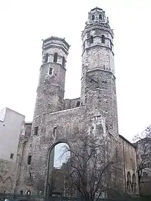 - (de) Cet article est partiellement ou en totalité issu de l’article de Wikipédia en allemand intitulé « Westwerk » (voir la liste des auteurs).