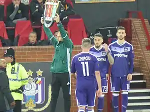 (nl) « Vanhaezebrouck zet 18-jarige in de basis bij Anderlecht voor eerste match in Play-off 1 », sur Het Nieuwsblad, (consulté le ) - (nl) « CLUBNIEUWS. Het plan Vanhaezebrouck: Anderlecht met verrassende basisploeg tegen Moeskroen », sur Het Nieuwsblad, (consulté le )