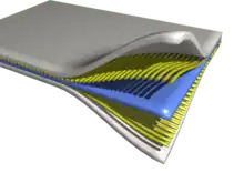 Selon un angle prédéfini (45° par exemple les unes par rapport aux autres) : renforcement multidirectionnel : renfort tissé, |