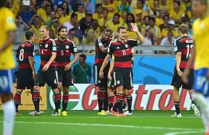 Côté allemand, la victoire signifie que, pour la quatrième fois consécutive, l'Allemagne terminerait sur le podium du Mondial[23]. Si l'on excepte la poule finale de 1950[note 1], l'Allemagne est la première à inscrire sept buts en demi-finale mondiale[23],[27]. La Nationalmannschaft était la dernière équipe à avoir marqué six buts à ce stade de la compétition, en 1954 contre l'Autriche. Les cinq buts d'avance de la Mannschaft à la pause capitalisent sa plus grande avance à la mi-temps d'une rencontre de Coupe du monde, dépassant le 4-0 de la première mi-temps du match contre l'Arabie saoudite en 2002, qui s'était terminé sur le score de 8-0, la plus ample victoire allemande en phase finale[28]. Les deux autres équipes à accuser un déficit de cinq buts à la mi-temps étaient le Zaïre (face à la Yougoslavie) et Haïti (face à la Pologne) en 1974[35],[36]. Les sept buts inscrits par les Allemands ont par ailleurs dépassé le nombre total de buts inscrits par 29 nations ayant à ce moment-là disputé au moins une phase finale de Coupe du monde[23].