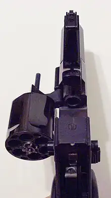 Vue arrière de l'Unica 6 avec le barillet en position ouverte.