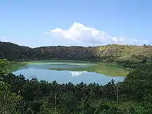 - le lac Dziani, lac de cratère (« maar ») en Petite-Terre, dont les eaux sont impropres à la baignade, car chargées en minéraux marins et volcaniques et saturées de phytoplancton. Sa superficie est d'environ 17,5 ha[43] ;