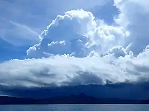 - Elle s'étale officiellement du au [49], avec un cœur de mousson de décembre à mars, culminant en janvier. La température moyenne est de 27,4 °C. L'humidité s'élève à 85 % le jour et à 95 % la nuit. Les fortes précipitations sont apportées par les vents de Nord-Est. Dzaoudzi reçoit ainsi plus d'un mètre d'eau durant une année dont 80% pendant la saison des pluies[40], et les inondations sont fréquentes, notamment dans la région de Mamoudzou. Cette saison se distingue par l'abondance des fruits tropicaux et une verdure couvrant toute l'île.