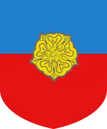 Les armes des Mazaman sont coupées d'azur sur gueules à une rose d'or brochant sur le coupé ou encore : Parti d'or et d'azur à une rose de gueules brochant sur le parti.