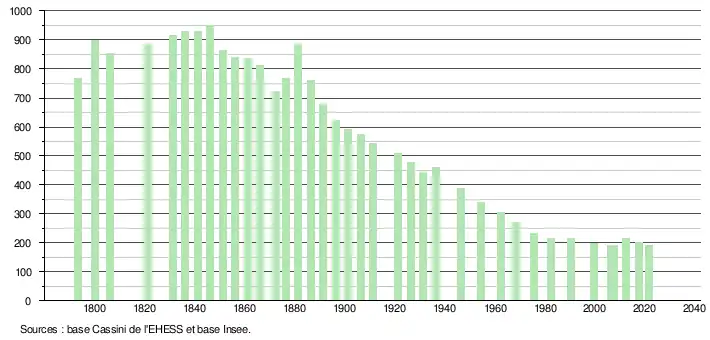 193 hab. (2021 en diminution de 8,96 % par rapport à 2015)