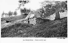 - mazuc/masuc ou masut/mazut[3], dans l'Aubrac, est le nom de huttes construites avec de fortes perches de hêtres recouvertes de mottes de terre ou de gazon, huttes où l'on préparait le beurre et le fromage.