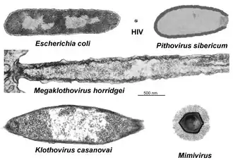 - Le précédent record était détenu par un Pithovirus sibericum extrait du pergélisol sibérien (2,5 μm)[2].