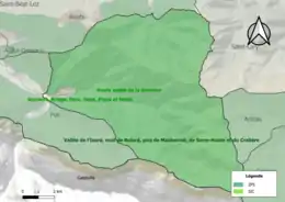- les « montagnes entre la haute vallée de la Garonne et la haute vallée du Lez » (28 414 ha), couvrant 21 communes dont 15 dans l'Ariège et six dans la Haute-Garonne[32].