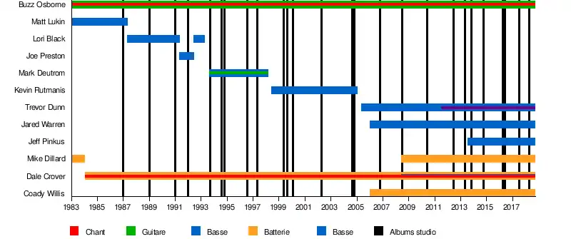 - Buzz Osborne – chant, guitare (depuis 1983)