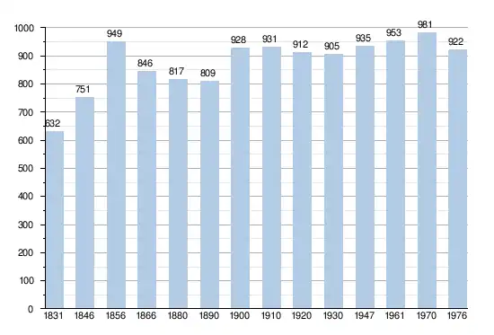 - Sources : INS, Rem. : 1831 jusqu'en 1970 = recensements, 1976 = nombre d'habitants au 31 décembre.