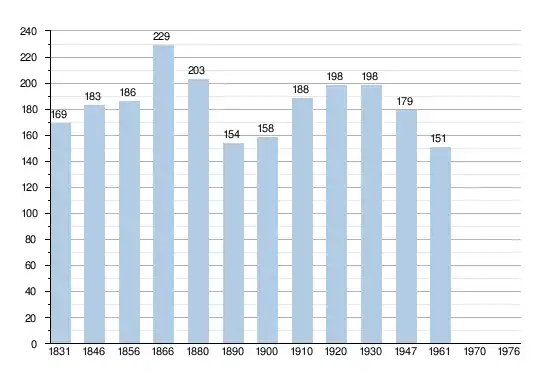- Source: DGS, 1831 à 1970=recensements population, 1976= habitants au 31 décembre