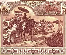 Néanmoins, apprenant que les Égyptiens avancent de Mitsiwa vers l'intérieur des terres, Menelik se détourne d'Abba Wato. Ce dernier est finalement emprisonné par Menelik qui prend la forteresse de Magdala[60]. Il nomme Mahammad Ali, gouverneur du Wello à qui les chefs locaux font allégeance ainsi qu'au negus du Choa en [60], lors de la fête de Mesqel[61]. Pendant la cérémonie, Menelik appelle à la tolérance religieuse :