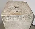 Le ménologe découvert par Colocci à Rome, au Champ de Mars, au 16e siècle est gravé en colonnes sur les quatre faces latérales d'un autel de forme cubique[2] en marbre, à raison de trois mois par côté. Chacune des colonnes comporte, de haut en bas :