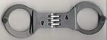 - les menottes à charnières : les 2 poignets sont reliés par une articulation ce qui restreint plus les mouvements de l'individu, ce système est réputé plus sûr[réf. nécessaire] ;
